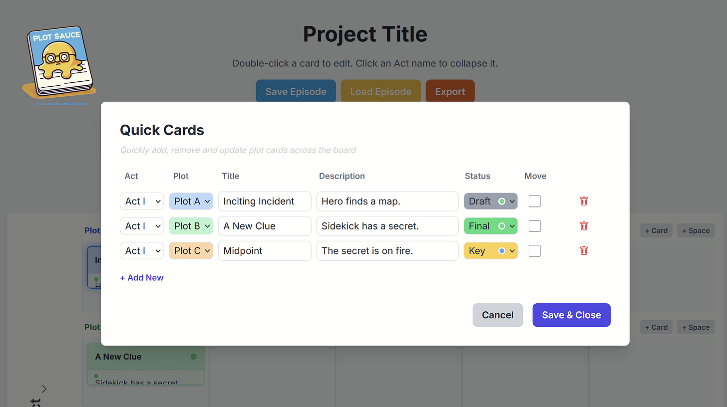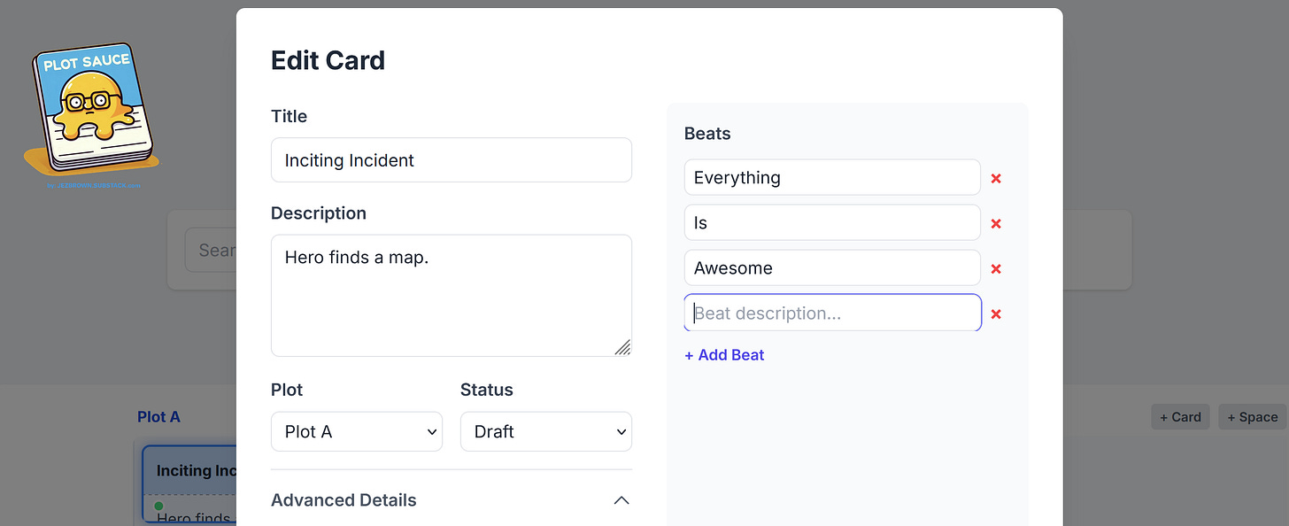 Hot tip: You don’t get a warning about deleting a plot card in ‘Quick Cards’, so be careful in there, but if you mistakenly hit ‘delete’, you can always hit ‘cancel’.