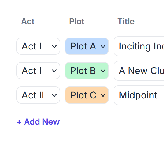 You can also add your scenes before you add them to your plot cards.