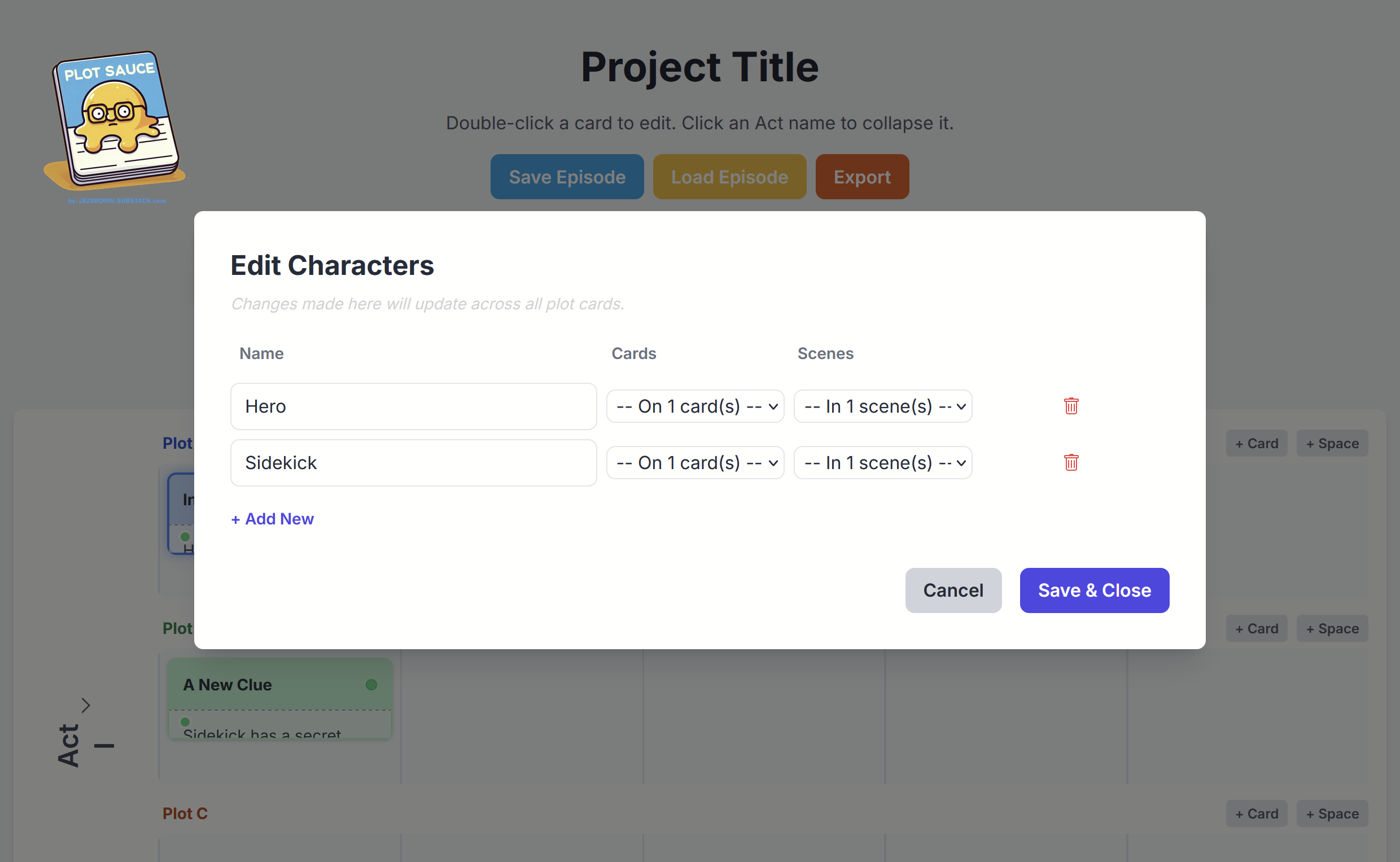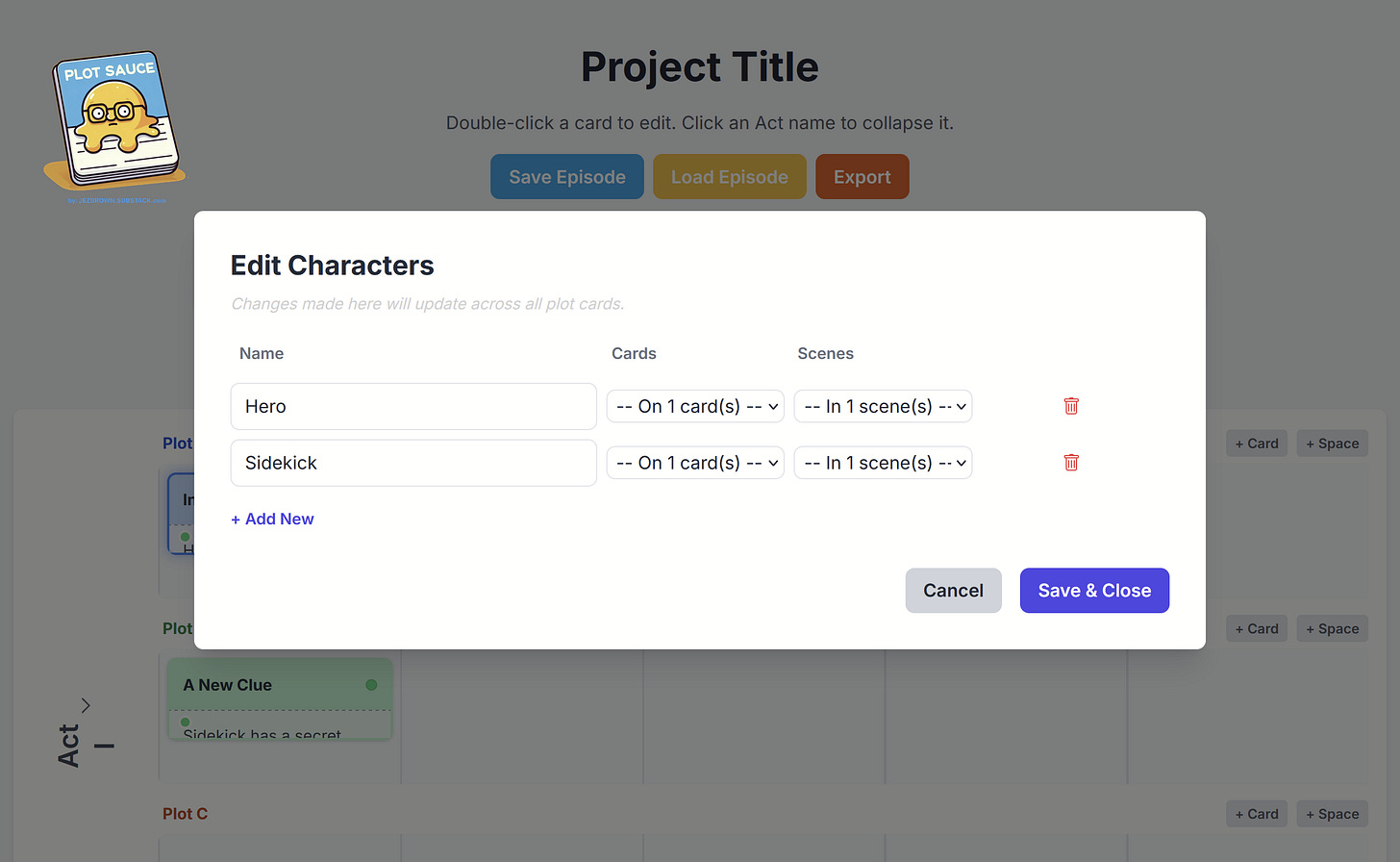 Quickly populate the board with plot cards to get your story started.